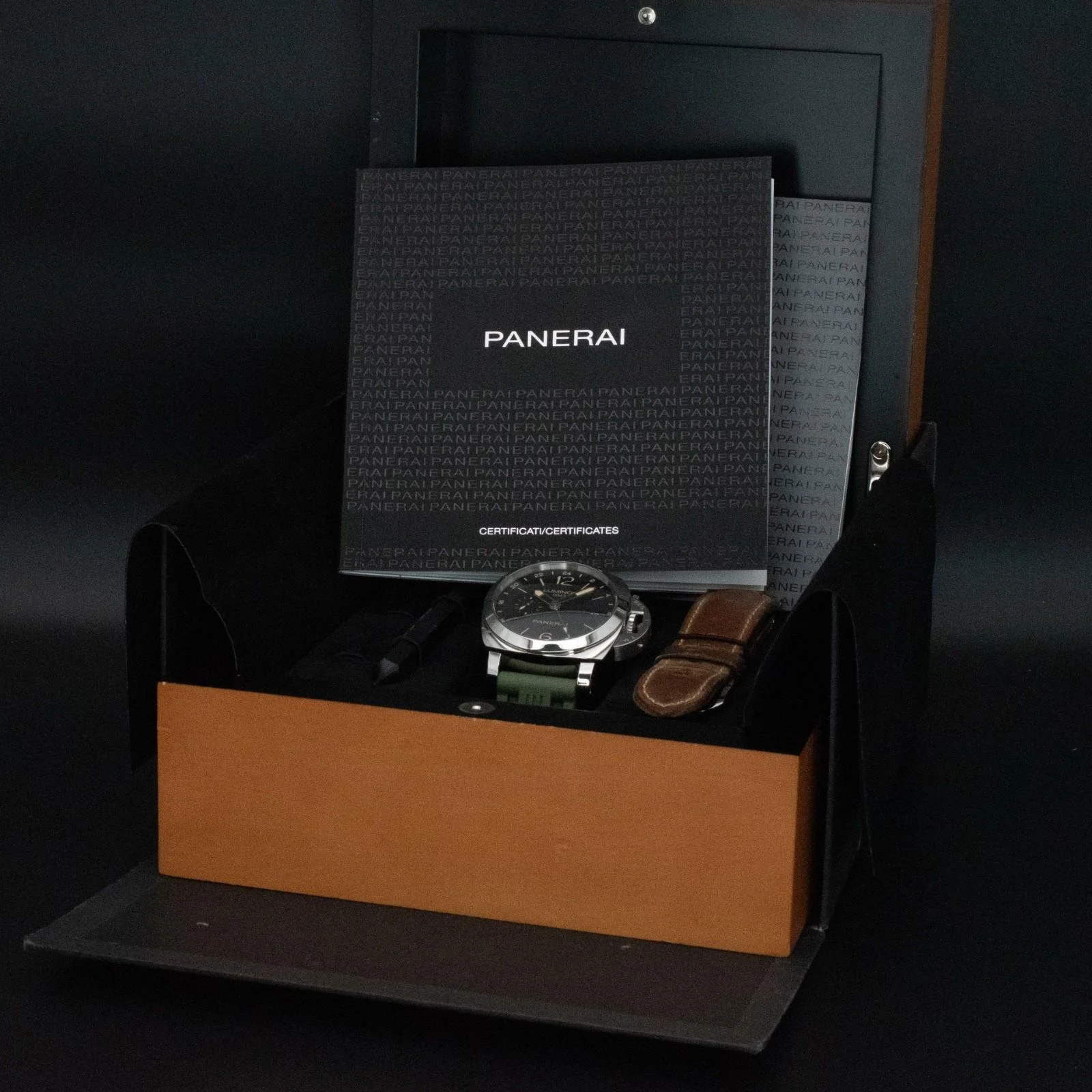 Contents: Double-boxed, strap tool, booklets, additional brown leather Panerai strap & buckle and 2018 warranty certificate.